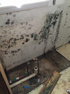 Mold on drywall due to trapped moisture in wall behind Kitchen cabinet << Previous Post Click here to view our project photos and to see what we've encountered. SEE GALLERY